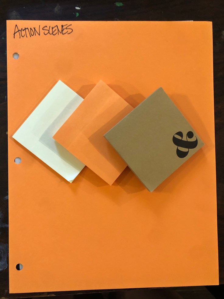 These are all scene ideas I would scribble furiously on a sticky note, then worry about putting them in order when we move on to OUTLINING.