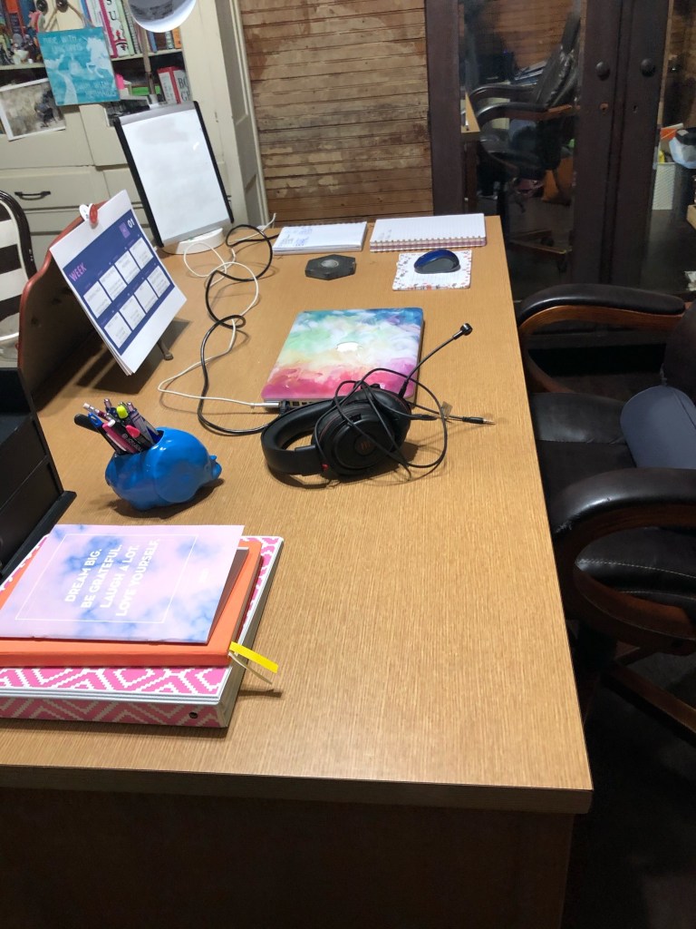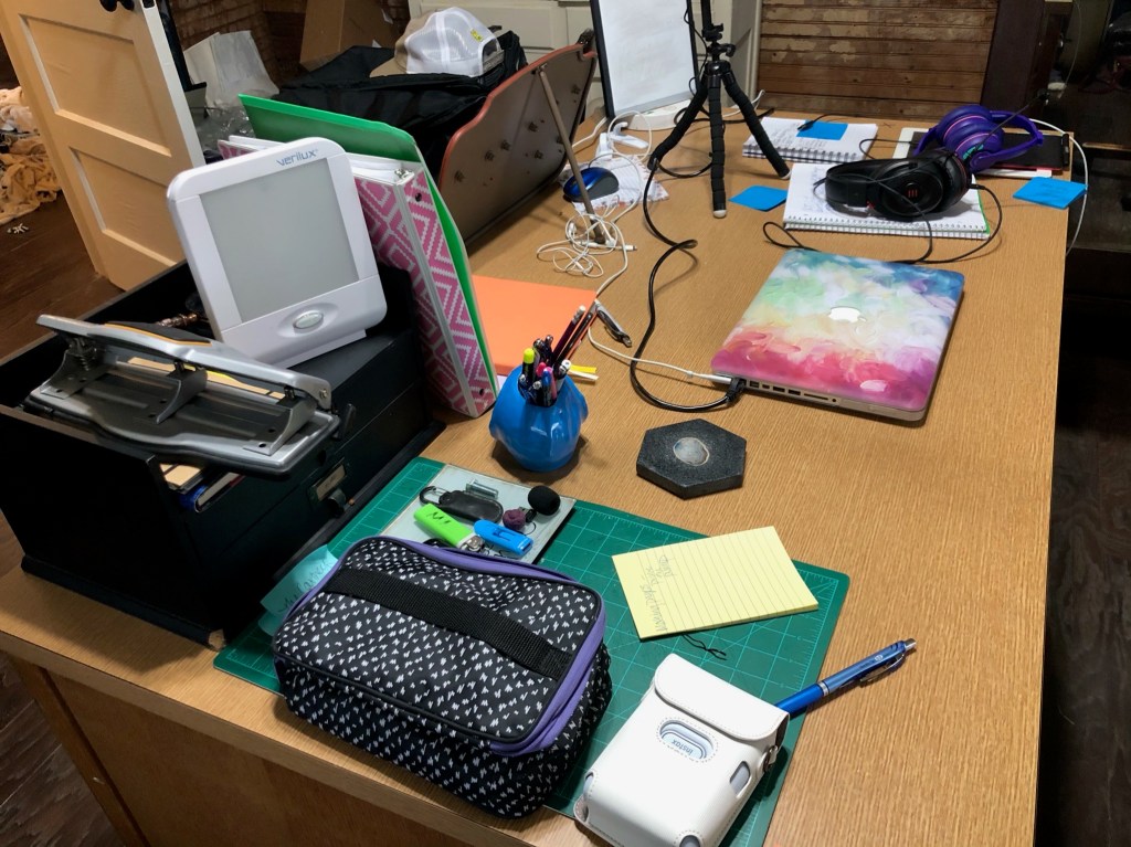 You need a surface and a chair. There’s not much else you require. Bonus is a quiet room with a door that shuts, but not everyone has that luxury. When prepping your space, ask yourself what you really need.